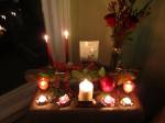 • If you have a nice enough table top or shelf you can simply put your items on it. Anne and I like to use really beautiful material. We buy it specifically with the altar in mind; everything from color, to the type of material.