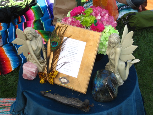 • Find a place in your home or yard that you feel has calm soothing energy. Try not to put it in a place where others might want to put things on it. People can often be somewhat unconscious of your altar and unknowingly put things on it that carry their energy like keys, drinks, etc.