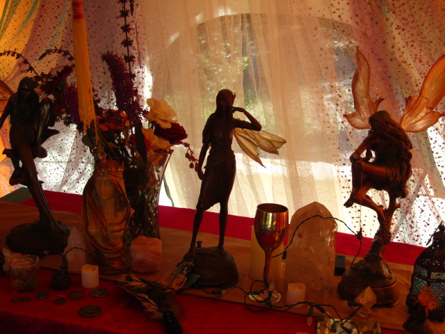 For the bigger ones we create we usually start with a vision or theme. Typically it’s sent to us in some type of message; often in a dream. Sometimes it’s based on a deity, other times we focus on a particular faith or type of magic. Then everything seems to fall into place after that with the items that are selected to create it. Some of them we look for months just trying to find the right piece, some we design ourselves, other times the piece we need manifests right in front of our eyes as we are building the altar.