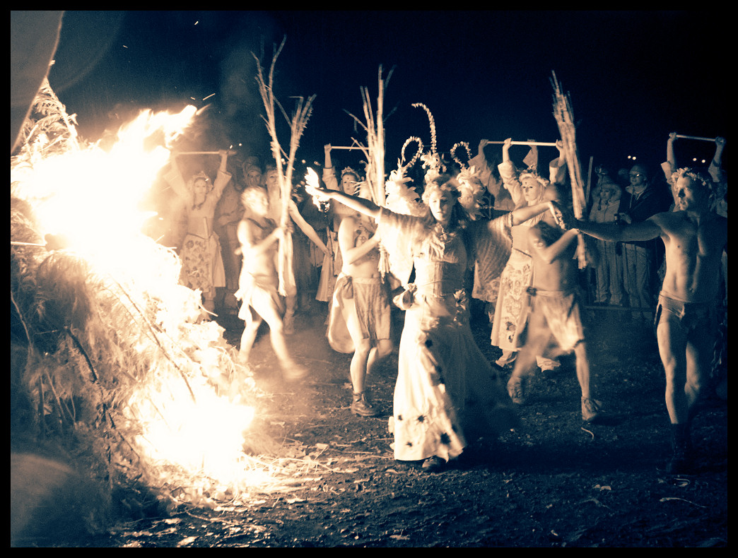 Bonfires are lit and traditionally made from different types of wood and wrapped with colorful ribbons. When the fire is ablaze, historically a piece of wood is taken from the fire and kept in the home to ensure a fertile summer.
