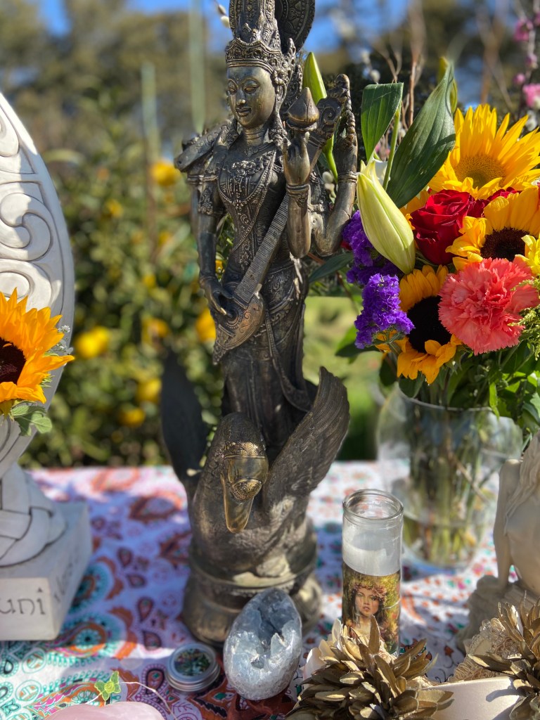 I Invoke you Goddess Saraswati into this sacred space granting us powers of Wisdom and the Arts.